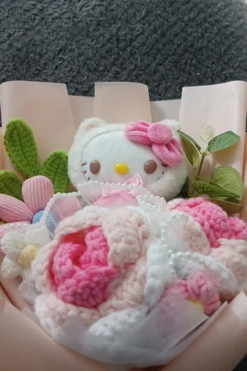 Pansy Beatty Bouquet itself is absolutely perfect and gorgeous, came two days earlier, and is perfect. It was packaged very well and came with no issues, just that kitty's eyes are a bit silly placed but that's okay. I definitely recommend buying them.